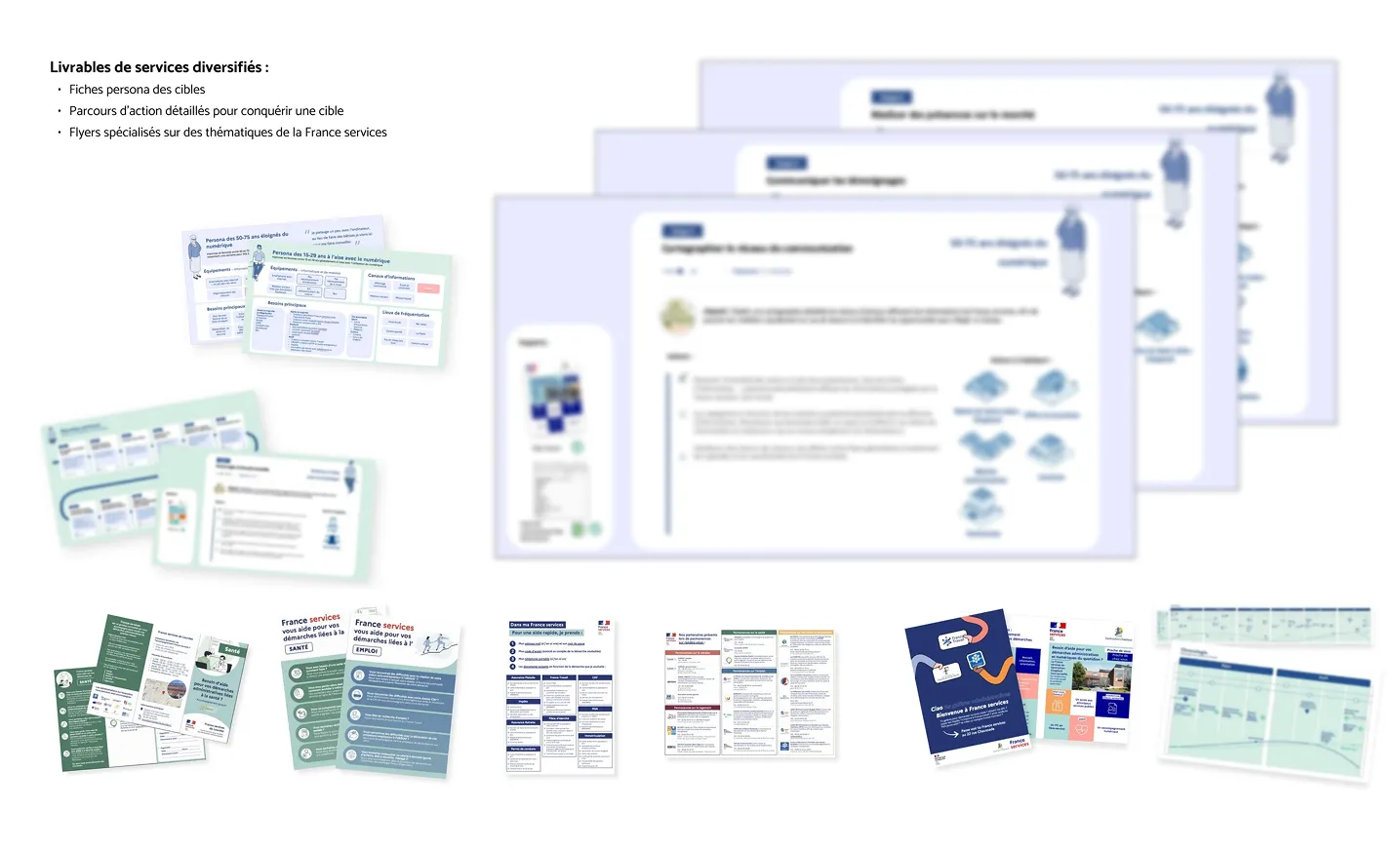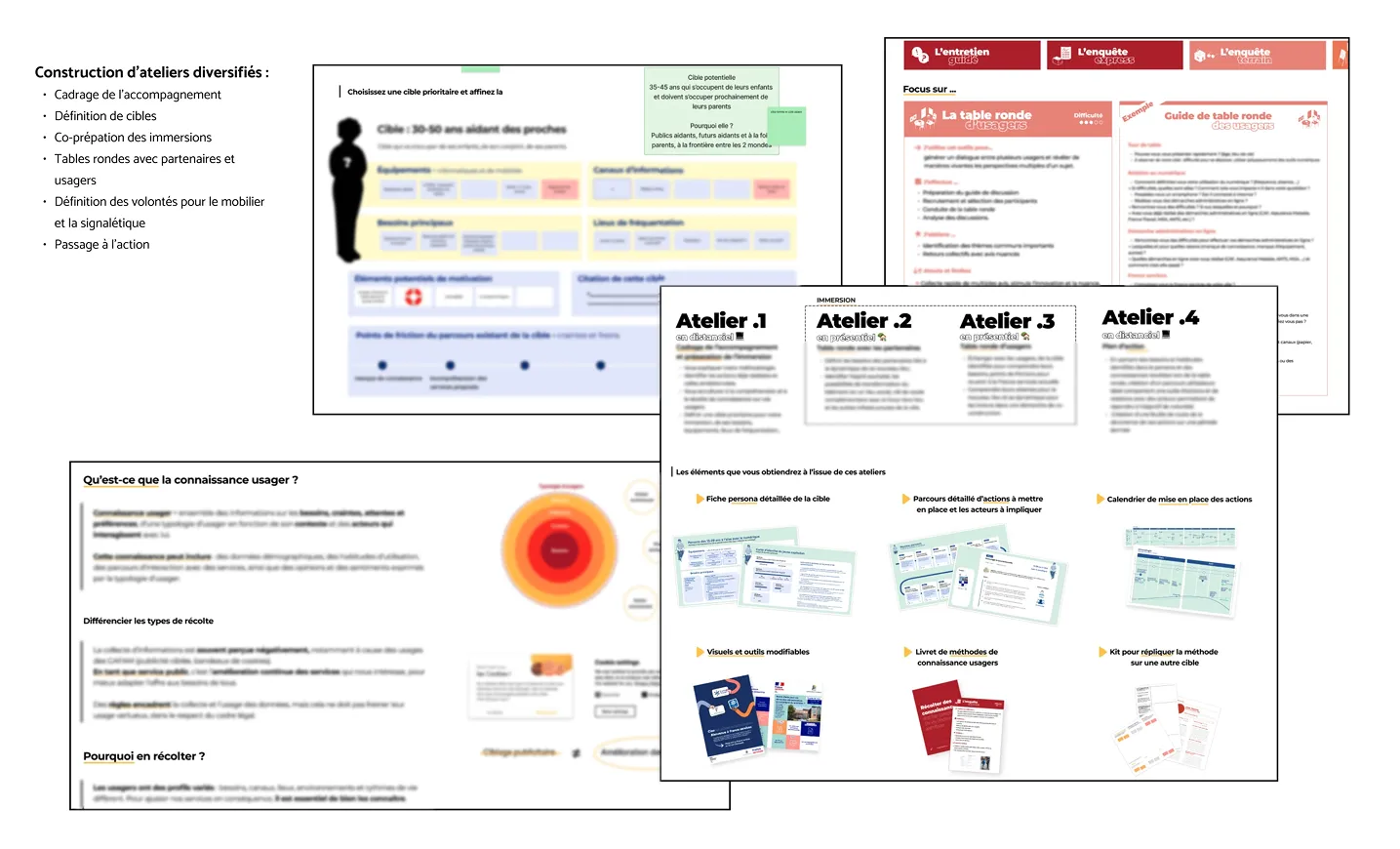 • Immersions terrain en binôme : entretiens avec agents, usagers, non-usagers et élus locaux pour comprendre les spécificités et besoins de chaque structure.